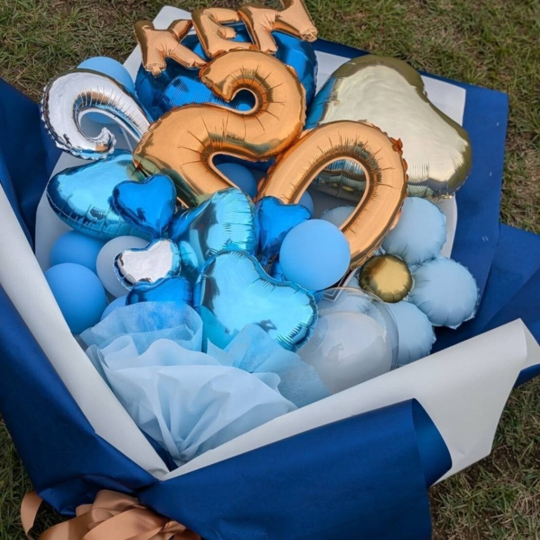 【BL-104】ネーム入りバルーン付きプリザーブドフラワーブーケ