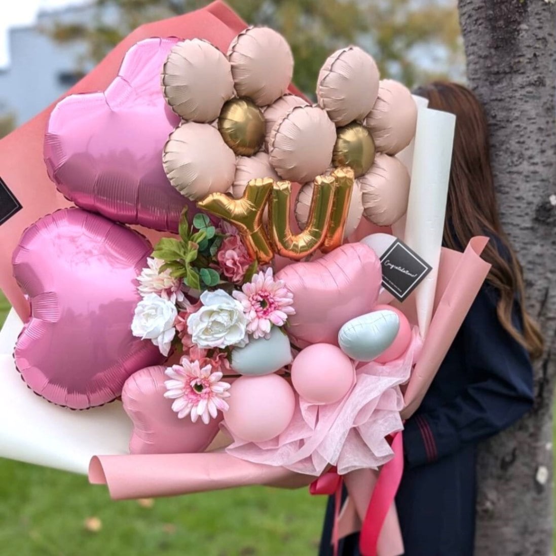 ※送料無料※【BL-A01】アートフラワーハートバルーンブーケ