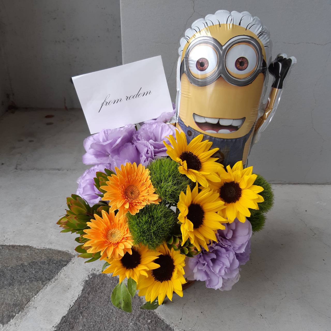 ※送料無料※【BL-235】ヒマワリアクアバルーンブーケ〈自立タイプ〉