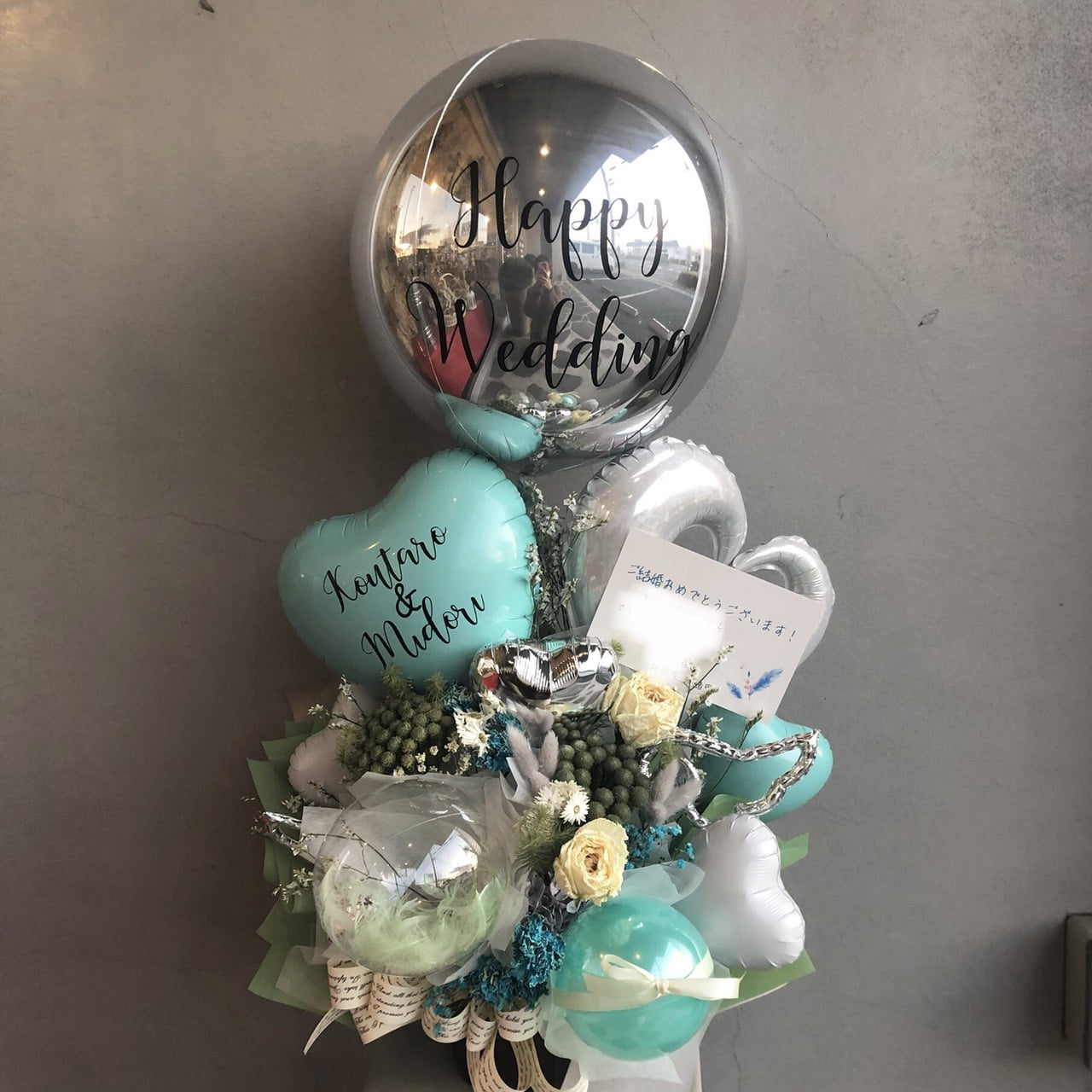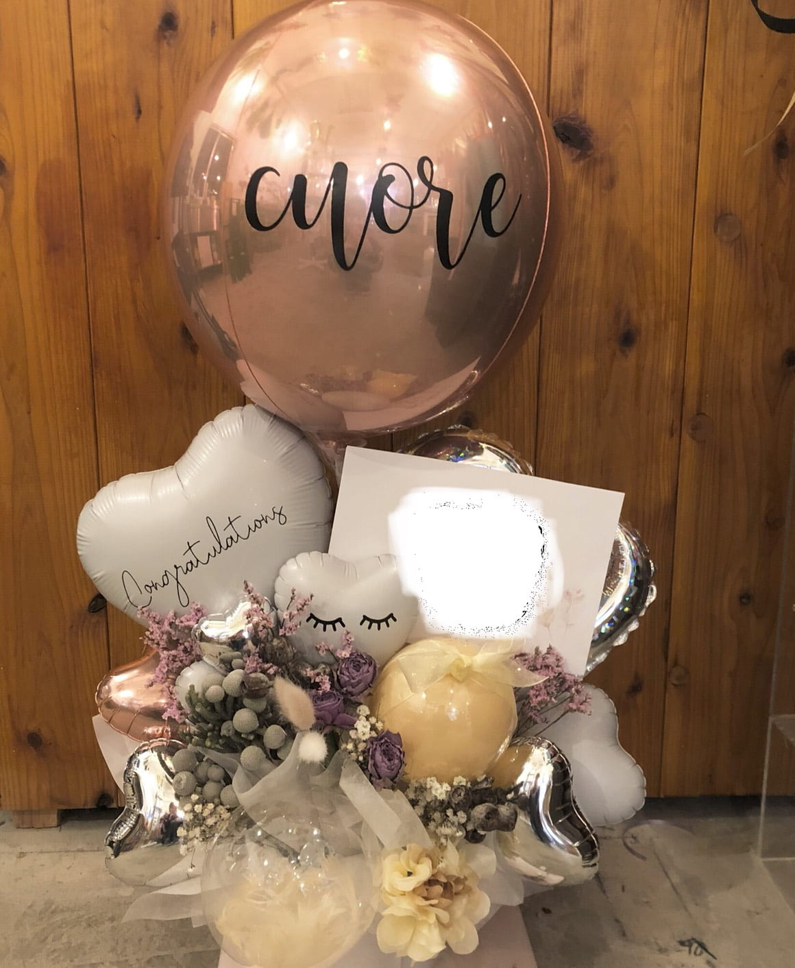 大きなミラーバルーンをメインにたくさんのバルーンと、
