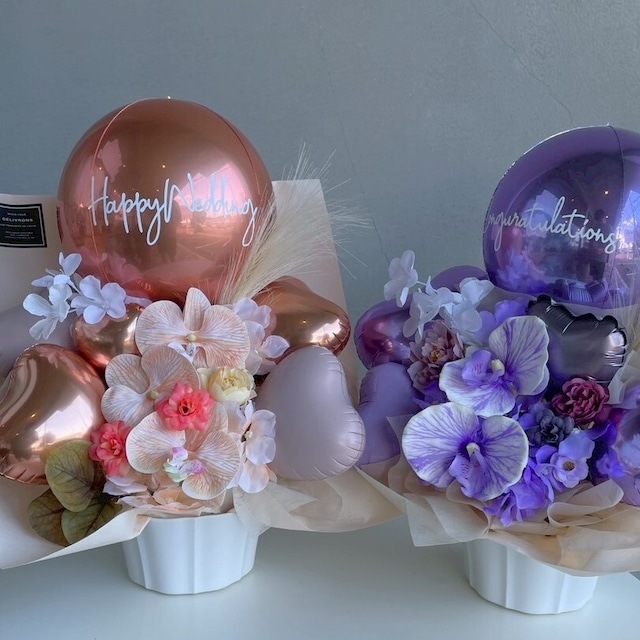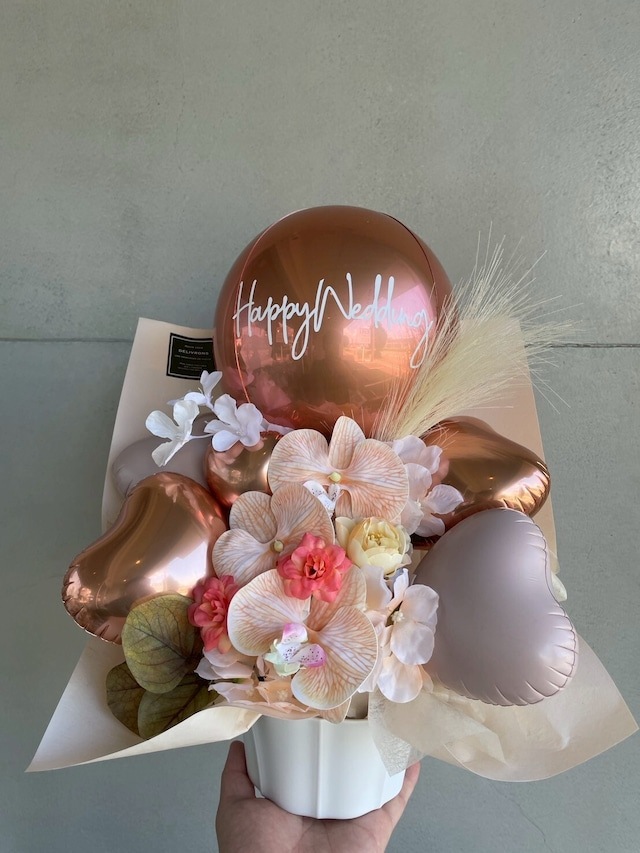気球バルーンと造花のアレンジメントギフト(全12色展開)