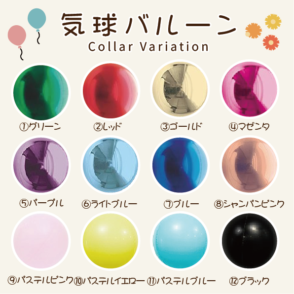 ・メインの気球型バルーンは全12色からお選びいただけます