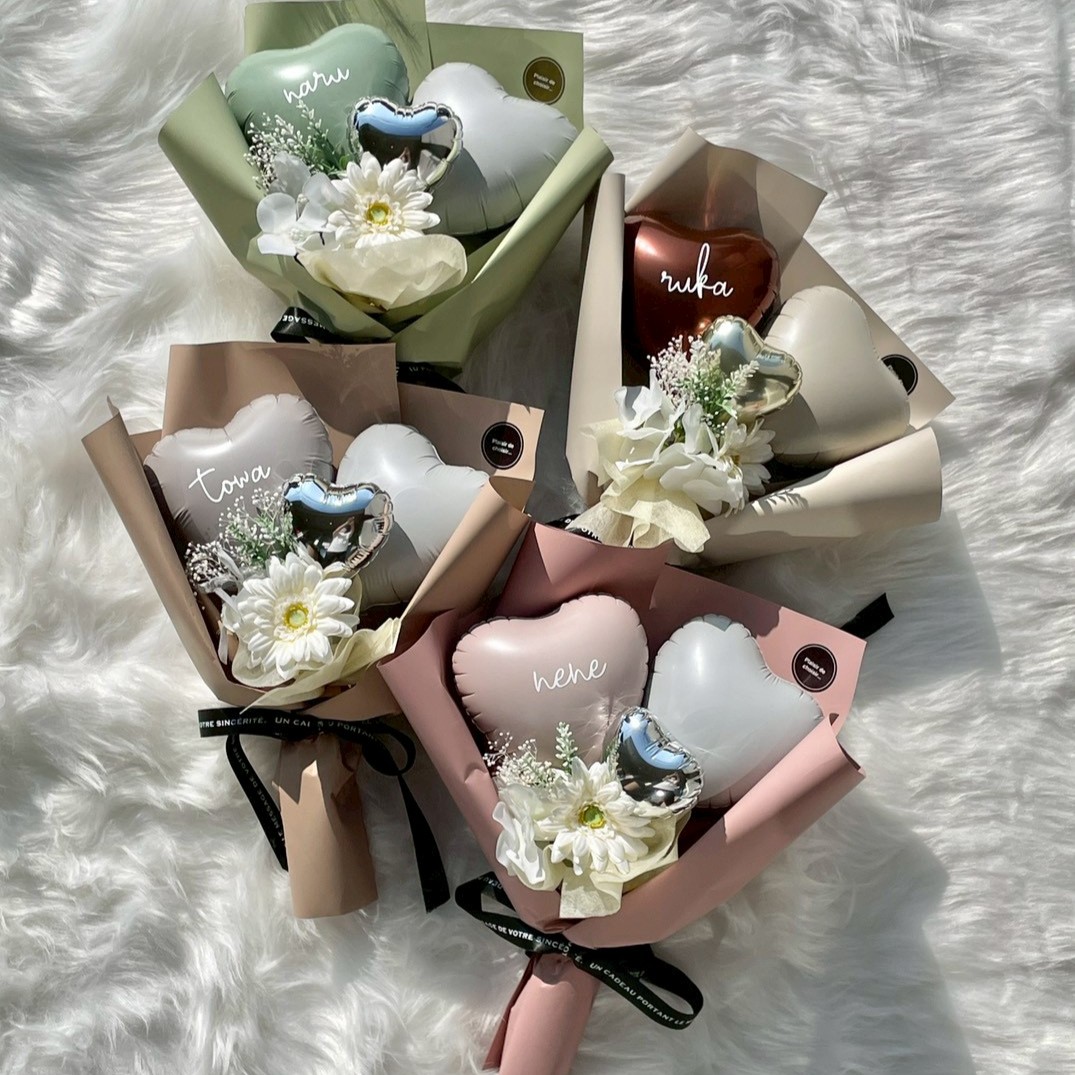- ふんわりとした色合いと上品なデザインが魅力の、ハートバルーンブーケ
